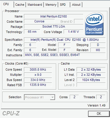 Результат разгона Intel Core 2 Duo (Conroe)