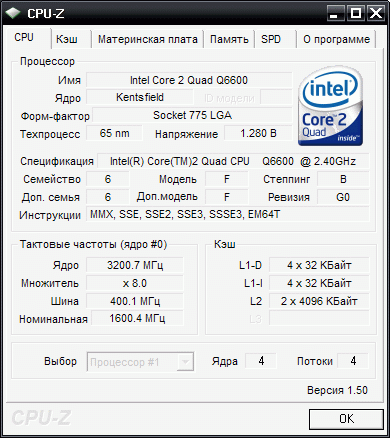 | Процессор (ядро) | Intel Core 2 Quad (Kentsfield) |