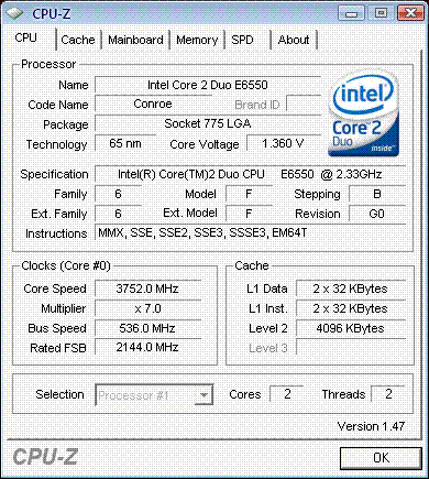 Результат разгона Intel Core 2 Duo (Conroe)