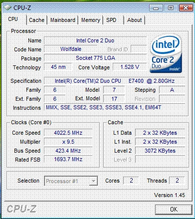 Результат разгона Intel Core 2 Duo (Wolfdale)