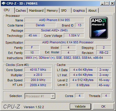 | Процессор (ядро) | AMD Phenom II X4 (Deneb) |