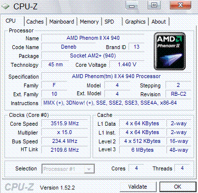 | Процессор (ядро) | AMD Phenom II X4 (Deneb) |