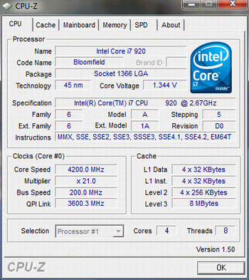 | Разгон, максимально стабильная частота (FSB x Ratio) | 4200 (200 x 21.0) |