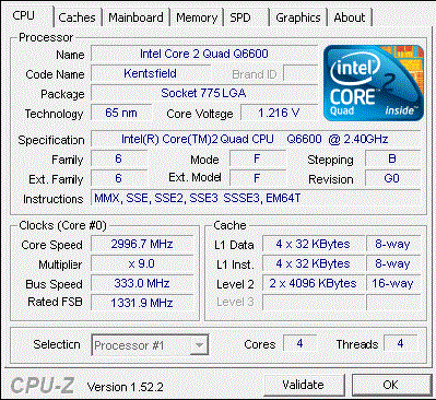 Результат разгона Intel Core 2 Quad (Kentsfield)