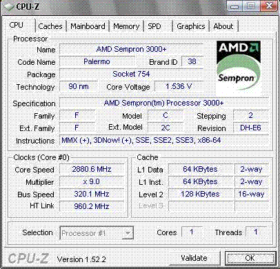 | Процессор (ядро) | AMD Sempron (Palermo) |