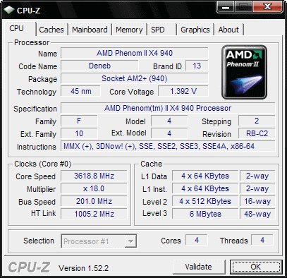 | Процессор (ядро) | AMD Phenom II X4 (Deneb) |