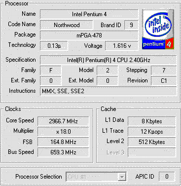 | Процессор (ядро) | Intel Pentium 4 (Northwood) |