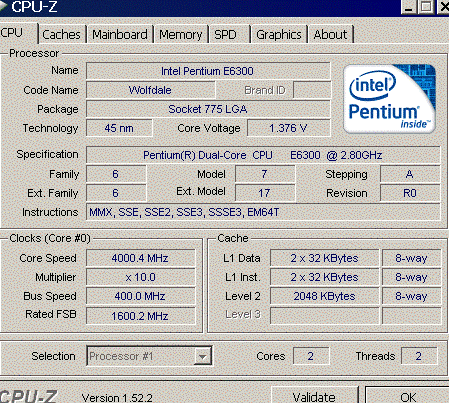 Результат разгона Intel Core 2 Duo (Wolfdale)