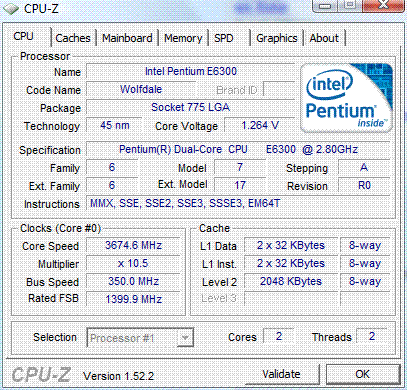 Результат разгона Intel Pentium Dual-Core (Wolfdale-2M)