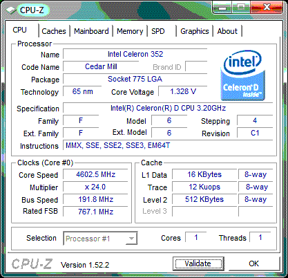 | Процессор (ядро) | Intel Celeron D (CedarMill-512) |