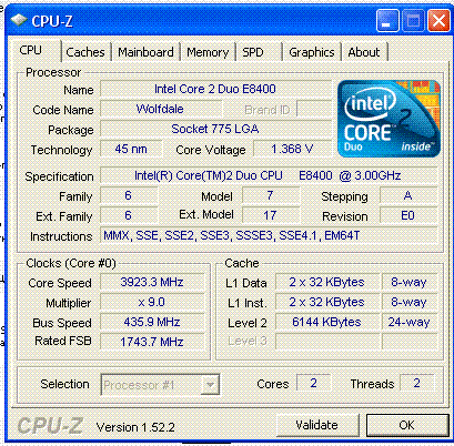 Результат разгона Intel Core 2 Duo (Wolfdale)
