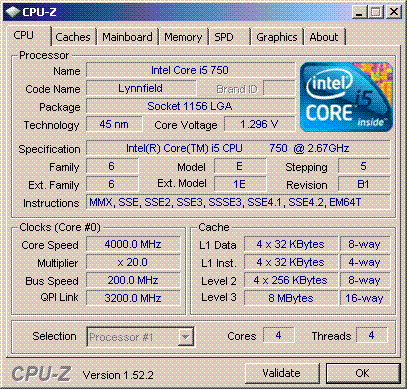 | Разгон, максимально стабильная частота (FSB x Ratio) | 4000 (200 x 20.0) |