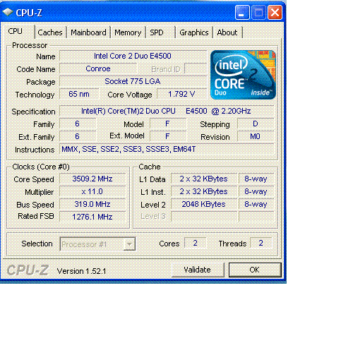 Результат разгона Intel Core 2 Duo (Conroe-2M)