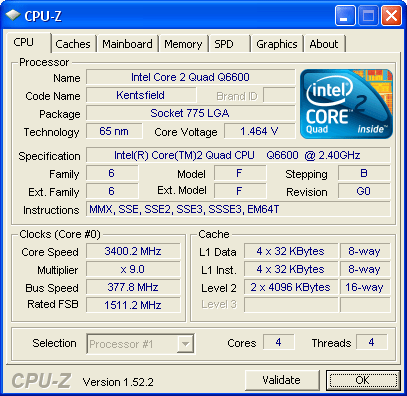 Результат разгона Intel Core 2 Quad (Kentsfield)