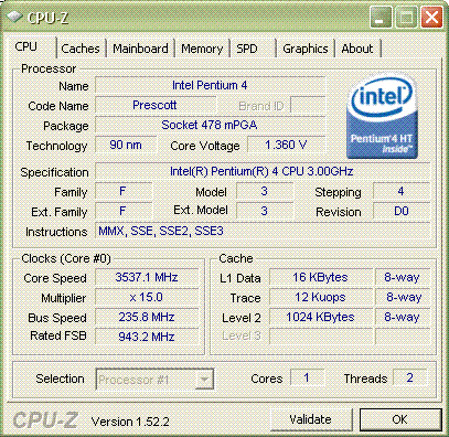 Результат разгона Intel Pentium 4 (Prescott)