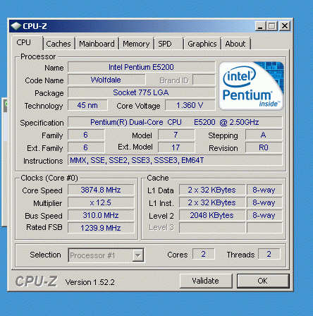 Результат разгона Intel Pentium Dual-Core (Wolfdale-2M)