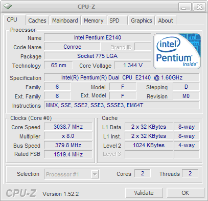 Результат разгона Intel Core 2 Duo (Conroe)