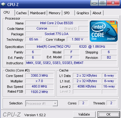 | Разгон, максимально стабильная частота (FSB x Ratio) | 3360 (480 x 7.0) |