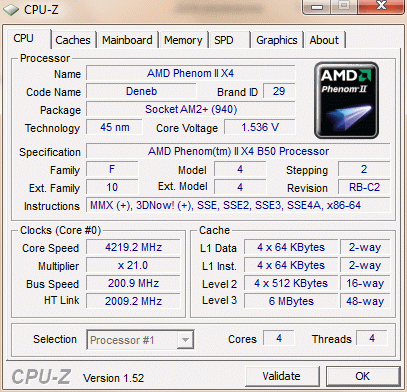 | Процессор (ядро) | AMD Phenom II X4 (Deneb) |