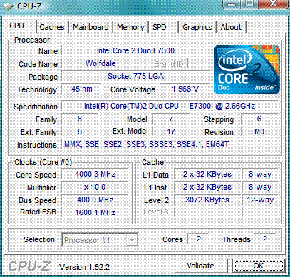Результат разгона Intel Core 2 Duo (Wolfdale)