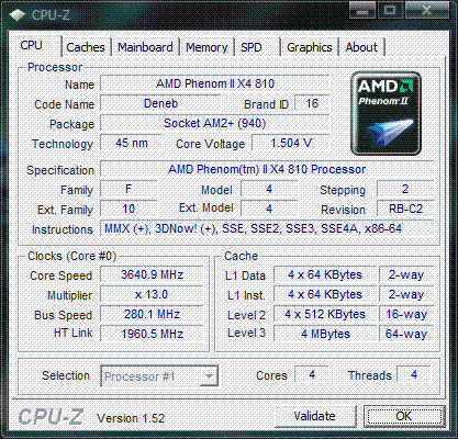 | Процессор (ядро) | AMD Phenom II X4 (Deneb) |