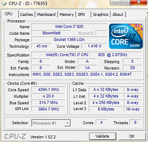 | Разгон, максимально стабильная частота (FSB x Ratio) | 4300 (215 x 20.0) |