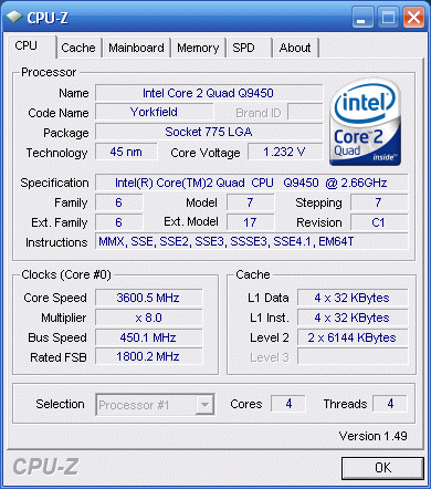 Результат разгона Intel Core 2 Quad (Yorkfield)