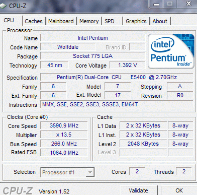 | Процессор (ядро) | Intel Pentium Dual-Core (Wolfdale-2M) |