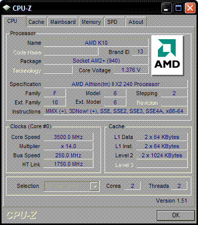 | Разгон, максимально стабильная частота (FSB x Ratio) | 3500 (250 x 14.0) |