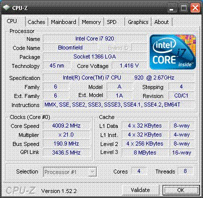 Результат разгона Intel Core i7 (Bloomfield)