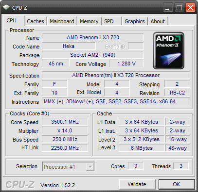 | Процессор (ядро) | AMD Phenom II X3 (Heka) |
