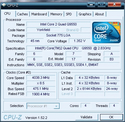 Результат разгона Intel Core 2 Quad (Yorkfield)