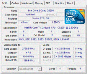 | Процессор (ядро) | Intel Core 2 Quad (Yorkfield) |