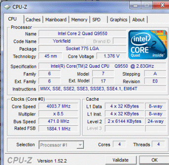 Результат разгона Intel Core 2 Quad (Yorkfield)