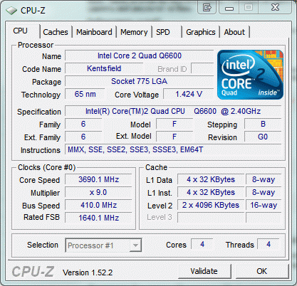 Результат разгона Intel Core 2 Quad (Kentsfield)