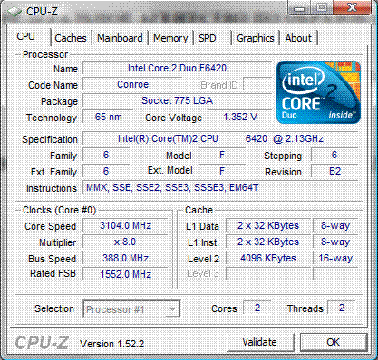 | Разгон, максимально стабильная частота (FSB x Ratio) | 3104 (388 x 8.0) |