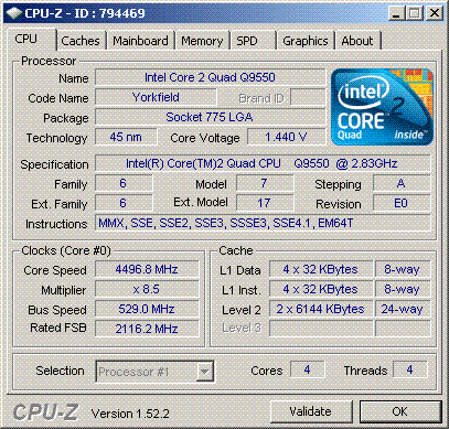 Результат разгона Intel Core 2 Quad (Yorkfield)