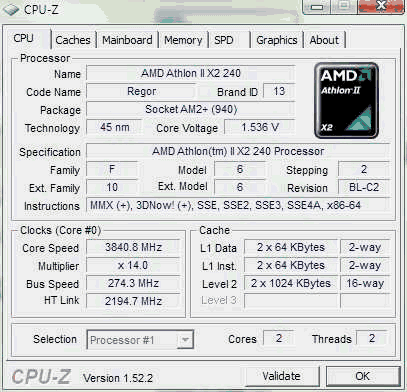 Результат разгона AMD Athlon II X2 (Regor)