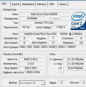 | Процессор (ядро) | Intel Core 2 Duo (Wolfdale) |