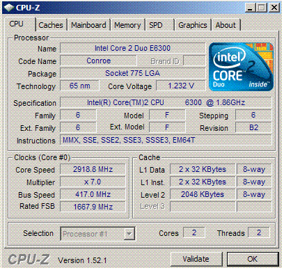 Результат разгона Intel Core 2 Duo (Conroe-2M)