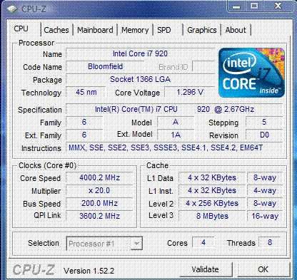 | Разгон, максимально стабильная частота (FSB x Ratio) | 4000 (200 x 20.0) |