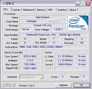 | Разгон, максимально стабильная частота (FSB x Ratio) | 4225 (325 x 13.0) |