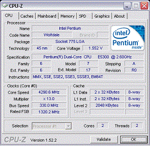 | Разгон, максимально стабильная частота (FSB x Ratio) | 4290 (330 x 13.0) |