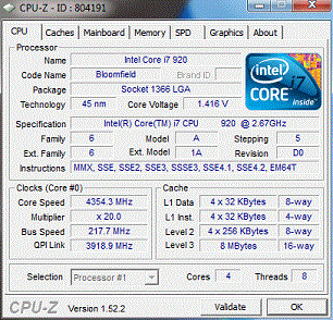 | Разгон, максимально стабильная частота (FSB x Ratio) | 4360 (218 x 20.0) |