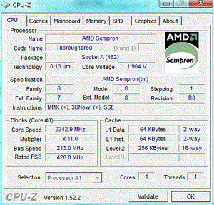 Результат разгона AMD Sempron (Thoroughbred)
