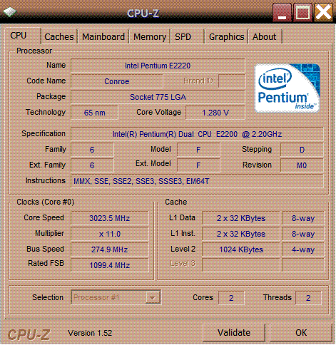 Результат разгона Intel Pentium Dual-Core (Conroe-1M)