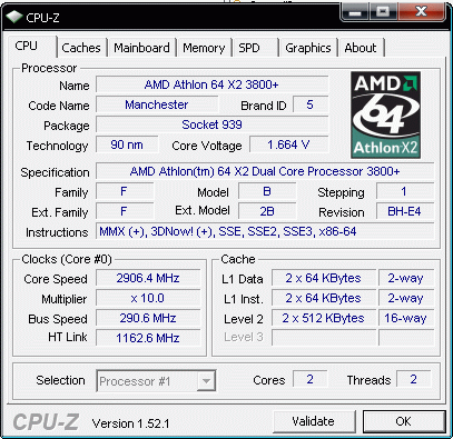 Результат разгона AMD Athlon 64 X2 (Manchester)