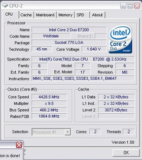 Результат разгона Intel Core 2 Duo (Wolfdale)