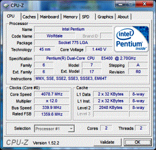 Результат разгона Intel Core 2 Duo (Wolfdale)