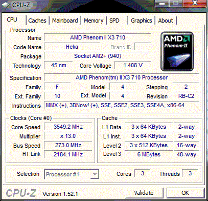 | Процессор (ядро) | AMD Phenom II X3 (Heka) |